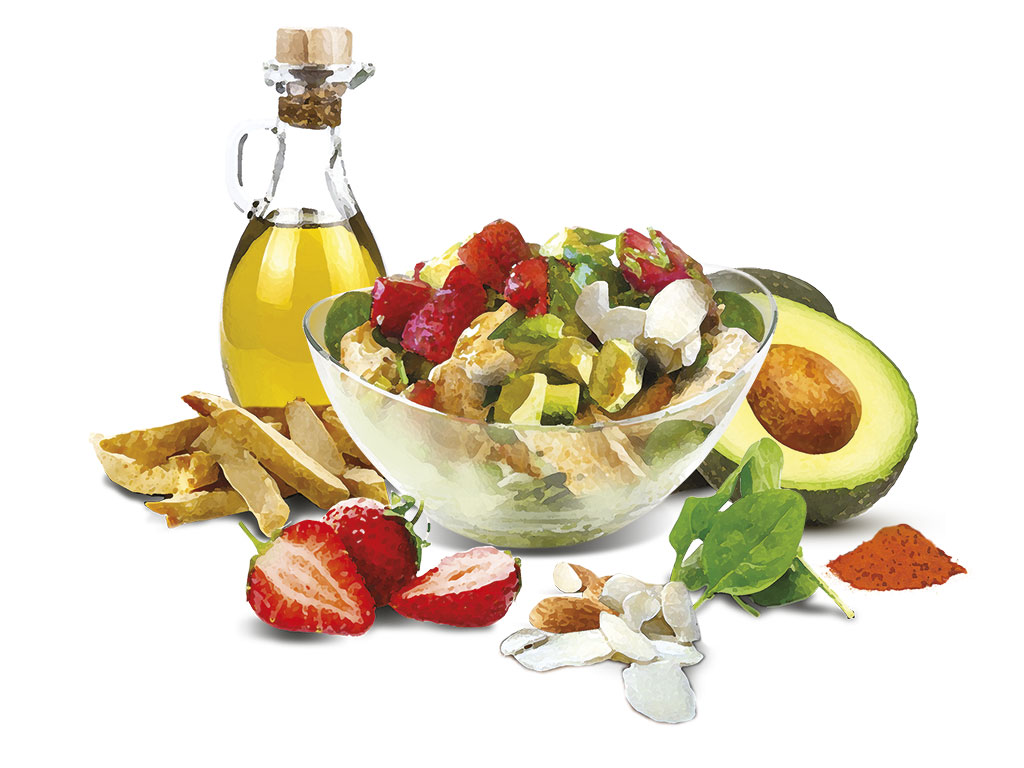 Prendete dei petti di pollo e cospargeteli di sale, pepe e paprika, quindi massaggiateli con le mani per condirli uniformemente. Cuoceteli in padella con un filo d’olio: quando sono cotti, tagliateli a striscioline e teneteli da parte. Preparate il condimento unendo in una ciotola olio extravergine d’oliva, yogurt greco, aceto, succo di limone, miele, semi di papavero, senape, sale e pepe, quindi emulsionate tutto mescolando con un cucchiaio. Componete ora l’insalata mettendo dello spinacino in una ciotola capiente. Aggiungete avocado, fragole, mandorle a scaglie e il pollo. Irrorate il tutto con la salsa che avete preparato e mescolate bene.