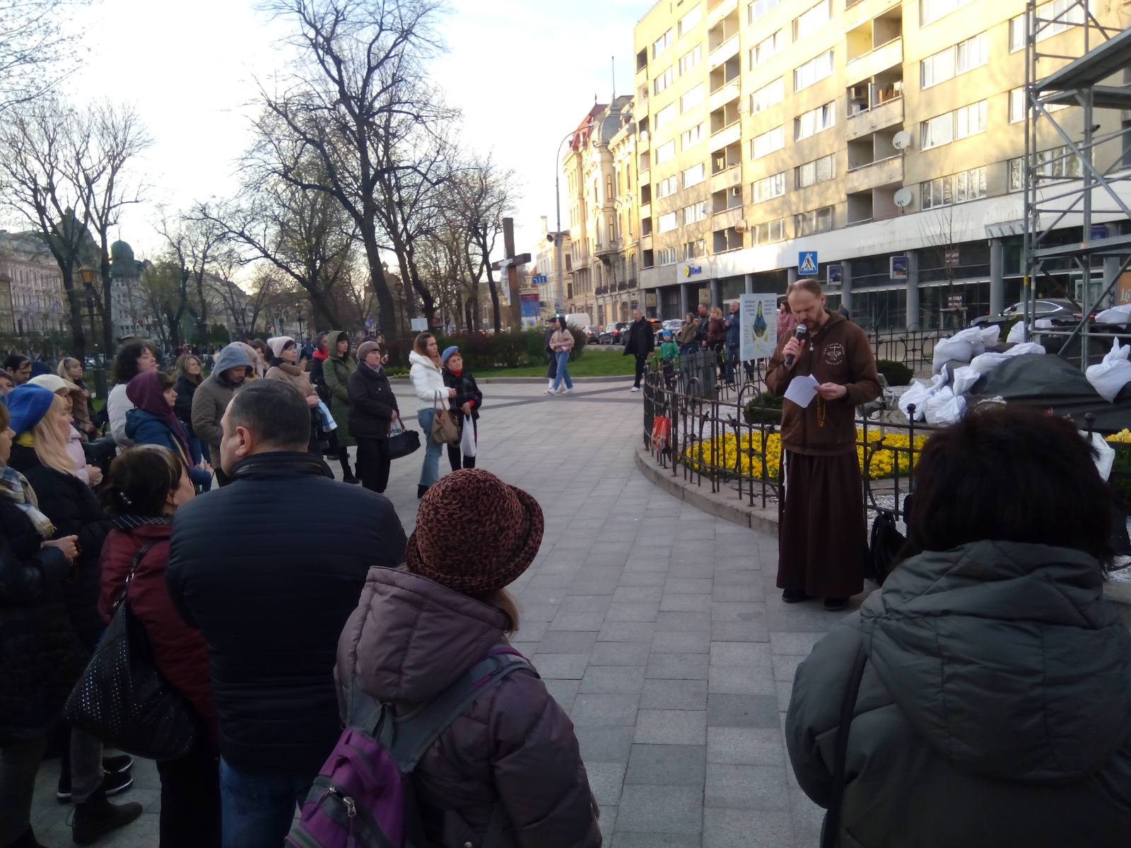 Dio, effondi lo spirito di pace nel mio cuore, nel cuore delle persone che sono con noi. Possa il tuo Spirito scendere e rinnovare la faccia della terra, di questa terra ucraina. Preghiamo per il presidente Zielensky, che si inchini davanti all'unico Dio e Re. Preghiamo per la conversione di Putin e dei nostri nemici. Preghiamo.