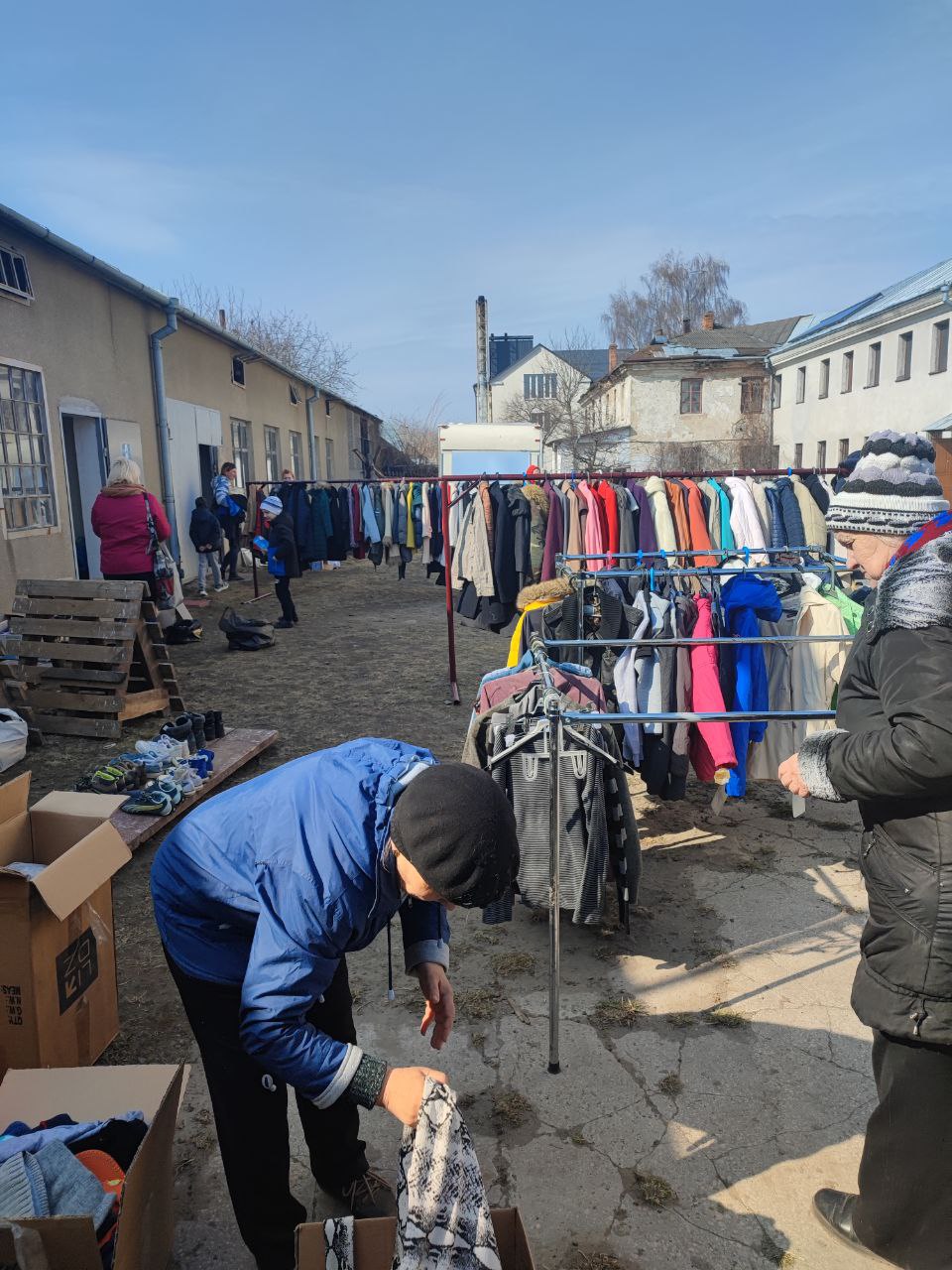 "Queste ragazze sono studentesse - volontarie che portano i propri dolci e li danno ai migranti. Sono stati qui diverse volte, questo è il loro modo di fare del bene. C'erano circa 250 persone oggi. Stavamo anche distribuendo set di biancheria intima e asciugamani che abbiamo ricevuto da un'azienda svedese. Venivano da Chmielnicki, hanno sentito parlare della nostra onestà e hanno deciso di aiutare. Volontari pieni di ottimismo, anche se stanchi in quanto devono condividere i doveri della casa con i doveri sociali. Domenica stavamo distribuendo a tutti i parrocchiani set di prodotti e martedì abbiamo invitato i parrocchiani a scegliere i vestiti per sé stessi.