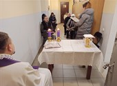 E’ tranquillo qui, solo qualche volta suonano gli allarmi. Circa 20 persone trascorrono qui la notte ogni giorno. Wladek è stato al confine per raccogliere aiuti medici e qualche provvista per i pochi parrocchiani rimasti in città. La maggior parte di loro se ne è andata. Organizziamo posti per loro con gli amici in Polonia. Visitiamo i parrocchiani anziani e poveri, compriamo prodotti per loro e preghiamo... Ci sono anche famiglie in transito che si fermano con noi per una notte durante il loro viaggio verso la Polonia.