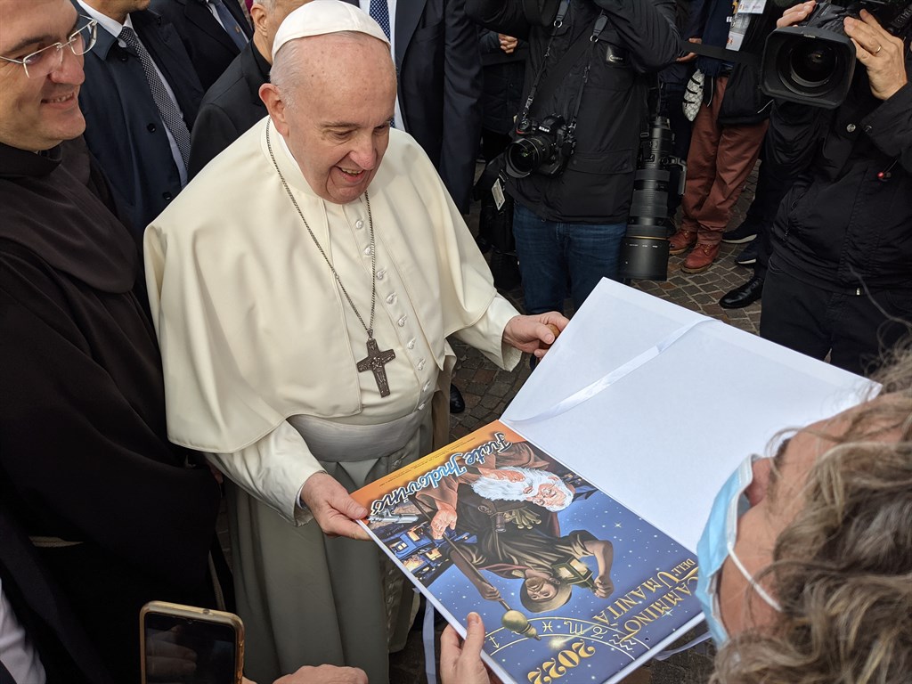 "Santità, questo è il Calendario di Frate Indovino del 2022: lo stampiamo da 77 anni per portare una buona parola e sostenere con le offerte che riceviamo le missioni dei frati cappuccini"