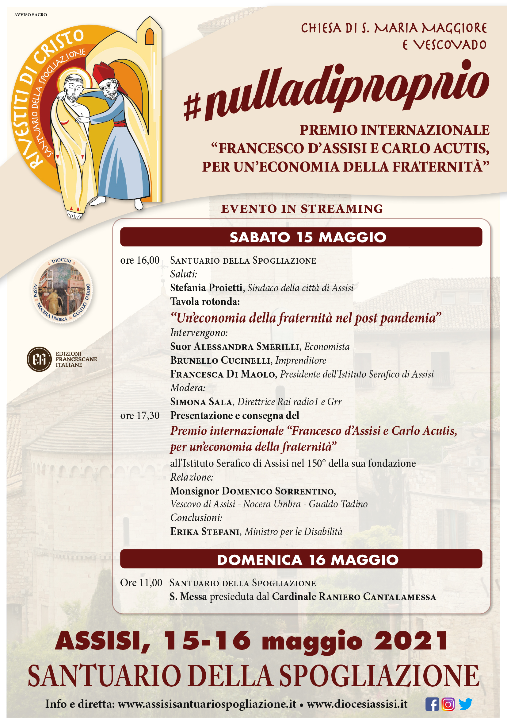 La due giorni si chiuderà domenica 16 maggio alle ore 11 nel Santuario della Spogliazione-Chiesa di Santa Maria Maggiore dove si terrà la celebrazione eucaristica presieduta dal cardinale Raniero Cantalamessa, teologo e predicatore della Casa Pontificia.