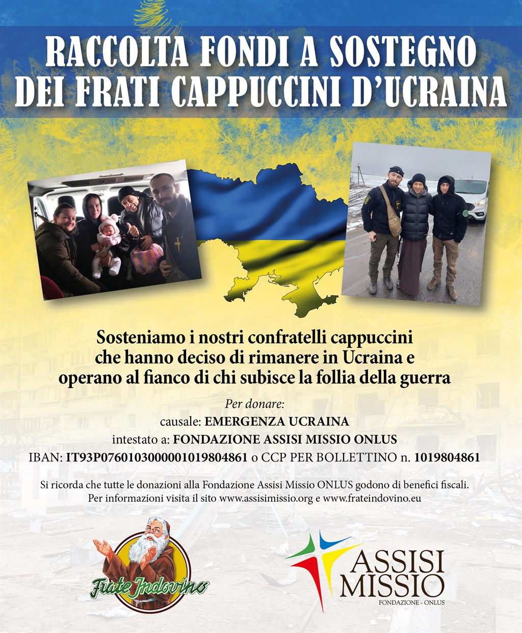 Si ricorda che tutte le donazioni alla Fondazione Assisi Missio ONLUS godono di benefici fiscali.