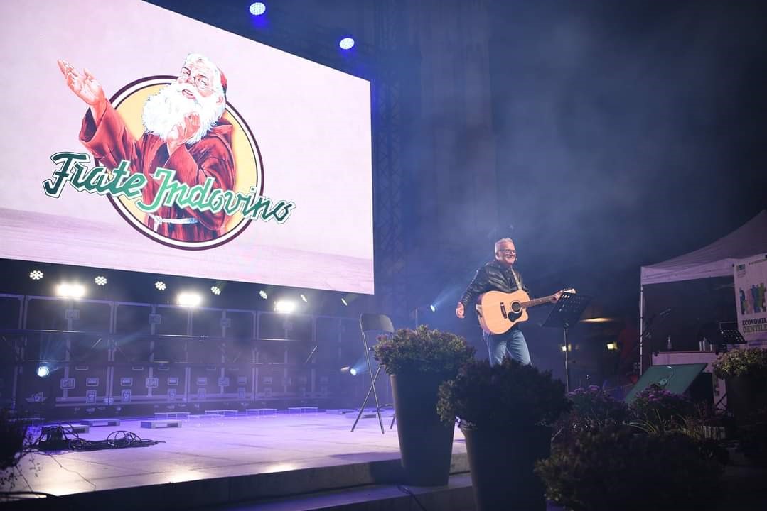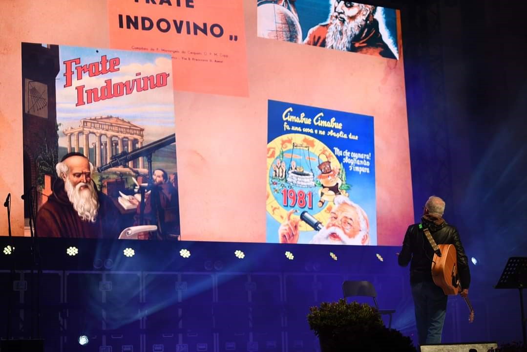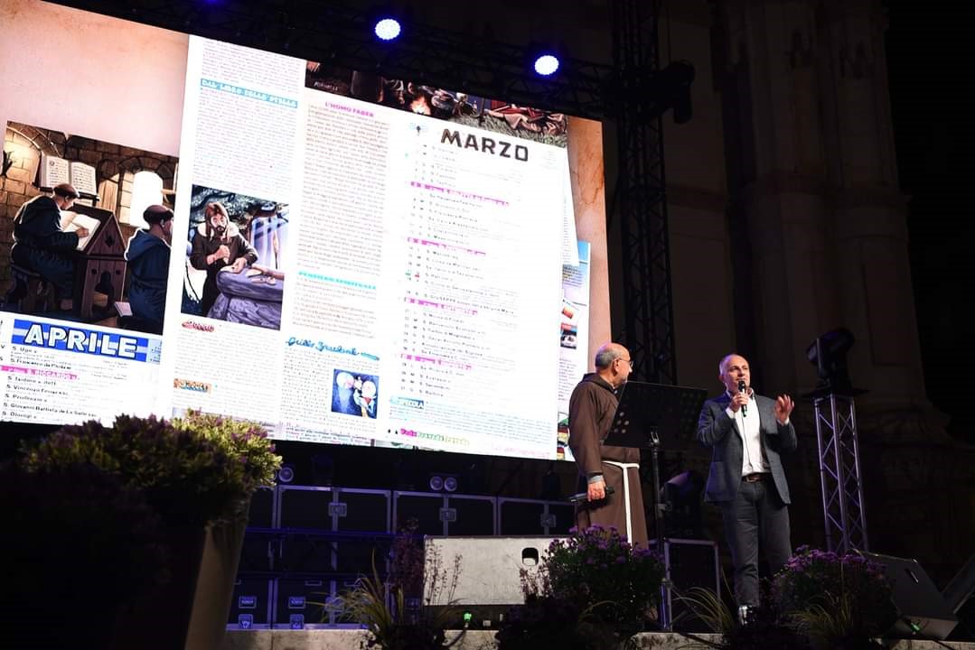 Frate Indovino ha dato il suo contributo portando come dono un pò di letizia francescana, proponendo un viaggio tra le pagine del celebre calendario che dalla sua nascita ad oggi ha accompagnato gli italiani nei vari cambiamenti che hanno vissuto attraverso immagini e rubriche. In questo viaggio siamo stati accompagnati da Max Paiella, comico, cantautore e imitatore, ormai nostro amico.