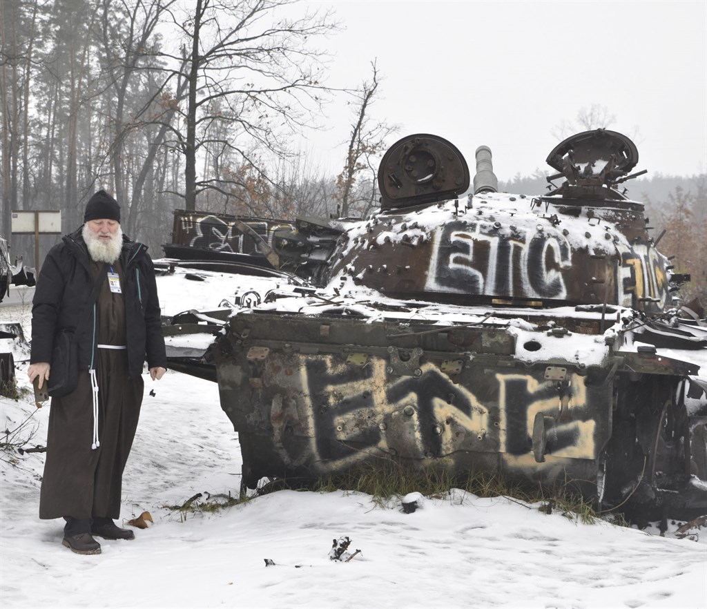 Proprio nel momento in cui stiamo per uscire dalla cripta, la sirena dell’allarme squarcia l’aria. Ce la prendiamo comoda, ma ci pensa una vicina esplosione – senza dubbio un colpo della contraerea – a farci accelerare il ritorno nella cripta. Seduti di nuovo attorno a dolcetti, tè e bibite varie, riprendiamo a parlare. Questa volta è un cappuccino dalla lunga barba bianca, fr. Piotr Błażej Suska: «Ho espresso un voto: mi taglierò la barba solo quando la guerra finirà». Tutti ridono. «All’inizio della crisi – ci spiega – nei negozi non c’era più nulla, c’era stata una corsa agli approvvigionamenti nelle settimane in cui si temeva l’inizio della guerra. Ora i canali normali di arrivo delle merci sono stati riadattati, e quindi non c’è più penuria di beni materiali. Ma c’è bisogno di aiutare finanziariamente i milioni di famiglie che non hanno più uno stipendio regolare».