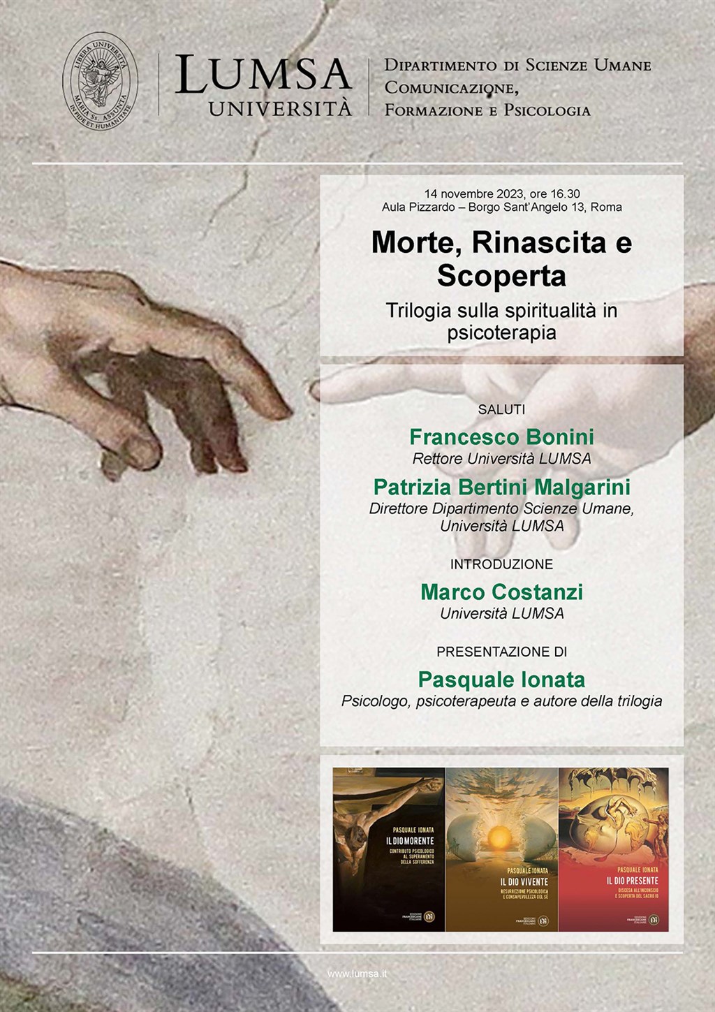 All’evento parteciperà il Magnifico Rettore della LUMSA, Prof. Francesco Bonini e il Direttore del Dipartimento di Scienze Umane, Prof.ssa Patrizia Bertini Malgarini. Introdurrà il Prof. Marco Costanzi della Lumsa.
