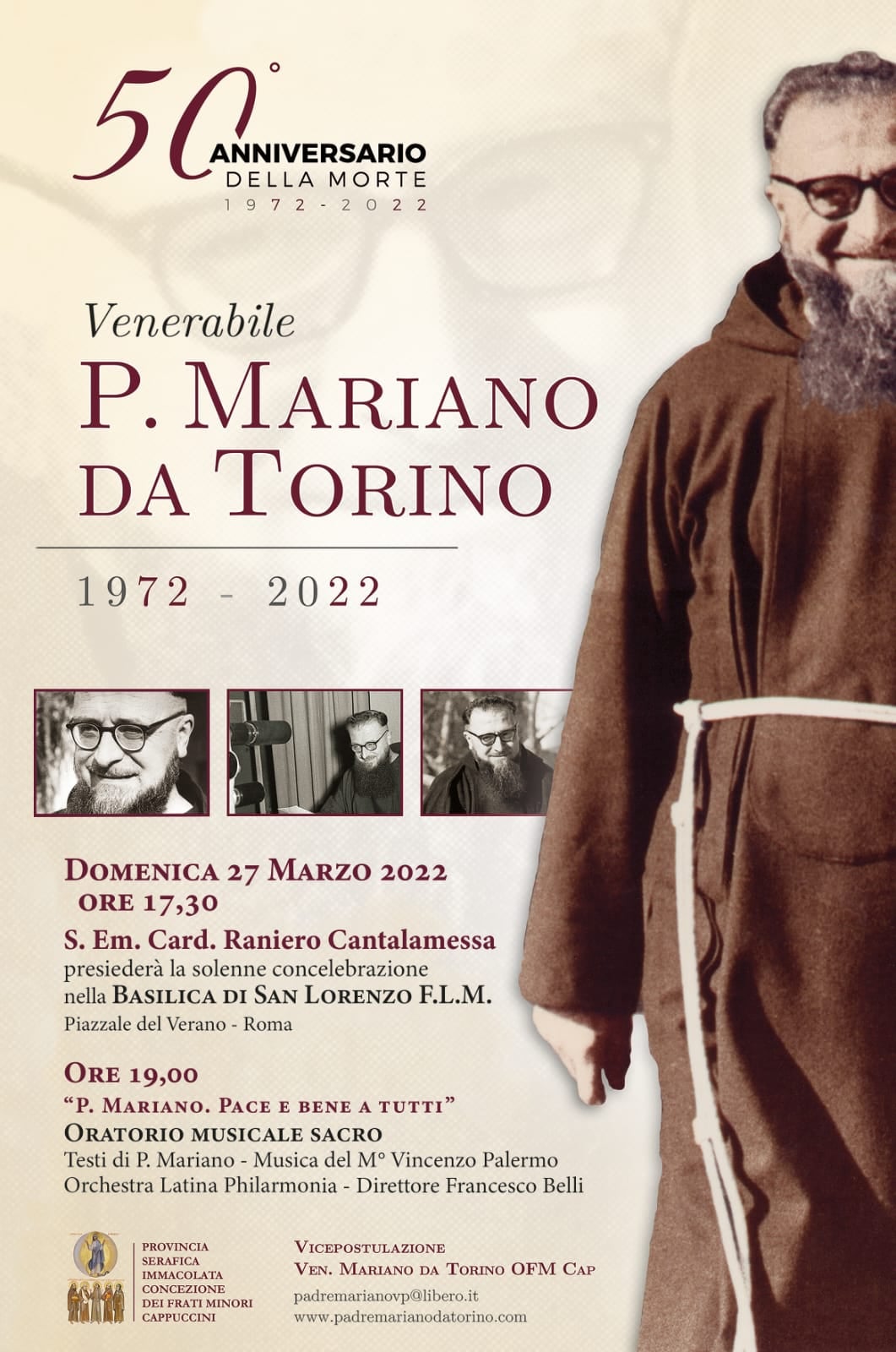 I problemi legati al Covid si sono rivelati strumento provvidenziale, perché in luogo della chiesa dei cappuccini di Via V. Veneto in Roma, dove p. Mariano è sepolto, le celebrazioni si svolgeranno nella basilica di San Lorenzo fuori le mura, dove si svolsero i funerali di p. Mariano e dove, nell'adiacente cimitero del Verano, fu sepolto fino al 1985.