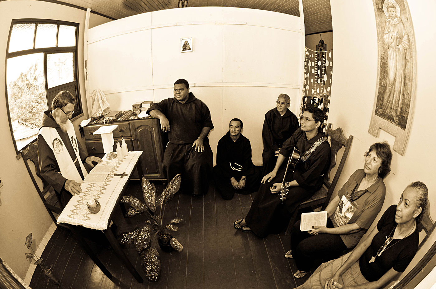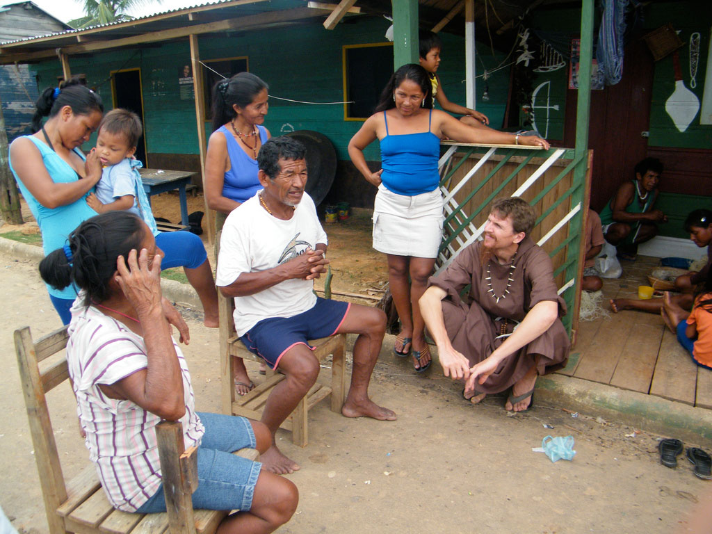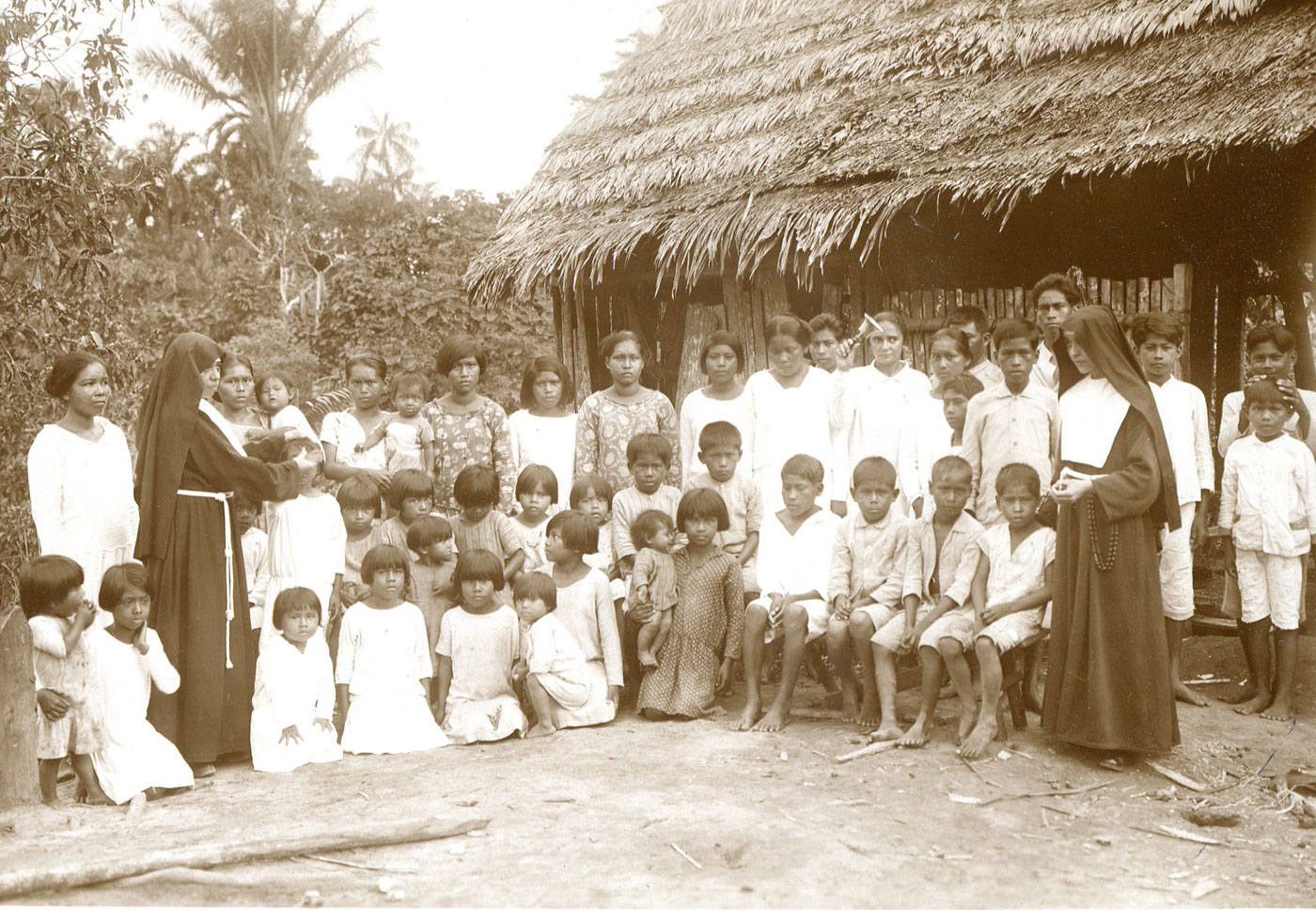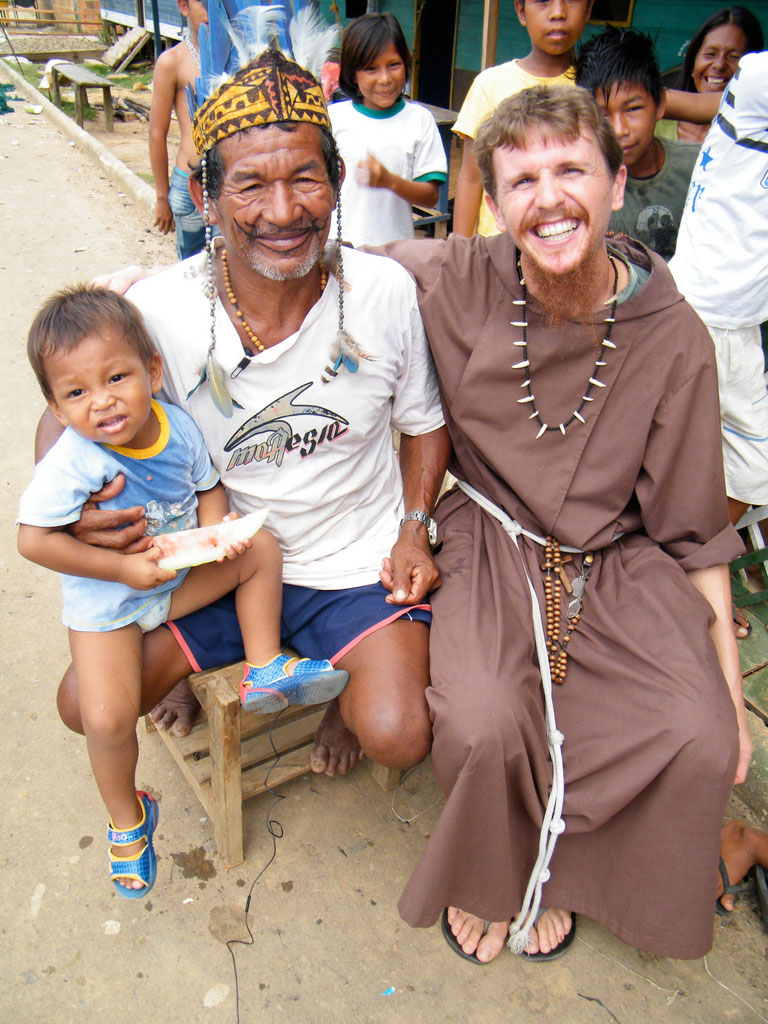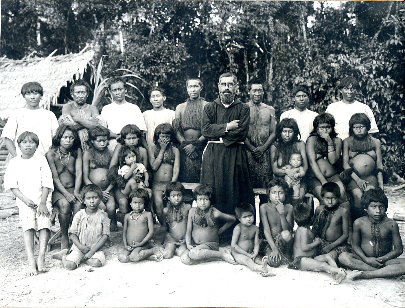 I frati Cappuccini umbri arrivarono in Amazzonia nel 1909. Erano in quattro: Agatangelo da Spoleto, Martino da Ceglie Messapica, Domenico da Gualdo Tadino, Ermenegildo da Foligno. Arrivarono a Manaus il 26 luglio, dopo trenta giorni di viaggio, per poi proseguire fino al confine che unisce il Brasile alla Colombia e al Perù, nella regione dell’Alto Solimões, in piena foresta pluviale. Le condizioni ambientali piegarono ben presto la salute dei primi missionari (uno di loro morì appena un anno dopo), ma molti altri ne arrivarono negli anni successivi. Iniziarono subito a lavorare con gli indios e con i coloni, costruendo una struttura sociale che aveva al suo centro una piccola chiesa, intorno a cui crescevano villaggi e città, scuole e ambulatori. I missionari si trasformarono in insegnanti, infermieri, carpentieri, agricoltori. In un secolo, lungo le rive del Rio Solimões, i frati Cappuccini umbri hanno segnato il territorio con la propria presenza e un’instancabile opera di evangelizzazione e promozione umana, che è arrivata a sostenere il lavoro di recupero di usi, costumi, tradizioni degli indios ticuna, quasi annientati dall’onda coloniale dei secoli precedenti.