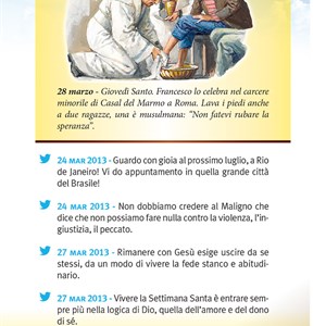 Ha conquistato tutti fin dalla sua prima apparizione la sera dell’elezione con quelle parole che ancora risuonano nella nostra mente: “Fratelli e sorelle, buonasera”… “Sono venuti a prendermi dalla fine del mondo”… “Pregate per me”… Le sue scelte, i suoi gesti, il suo modo di essere hanno fatto crescere in modo impensabile l’entusiasmo del mondo intero attorno alla sua persona. Abbiamo subito capito di trovarci difronte ad un personaggio che ha fatto “professione di umanità”, che ama in modo autentico e concreto senza leziosaggini e senza sconti.