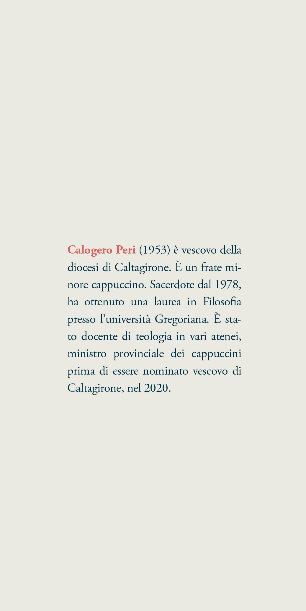 L’autore | Calogero Peri, dal 2020 vescovo della diocesi di Caltagirone, è un frate minore cappuccino. Sacerdote dal 1978, ha ottenuto una laurea in Filosofia presso l'Università Gregoriana.