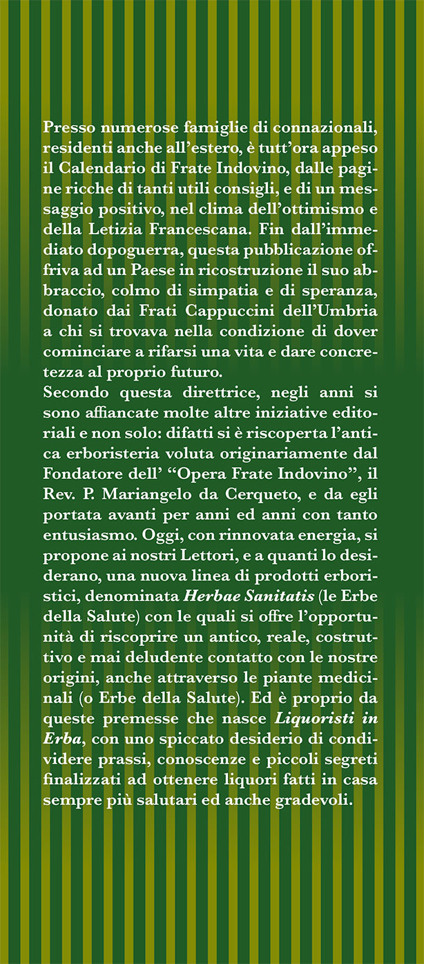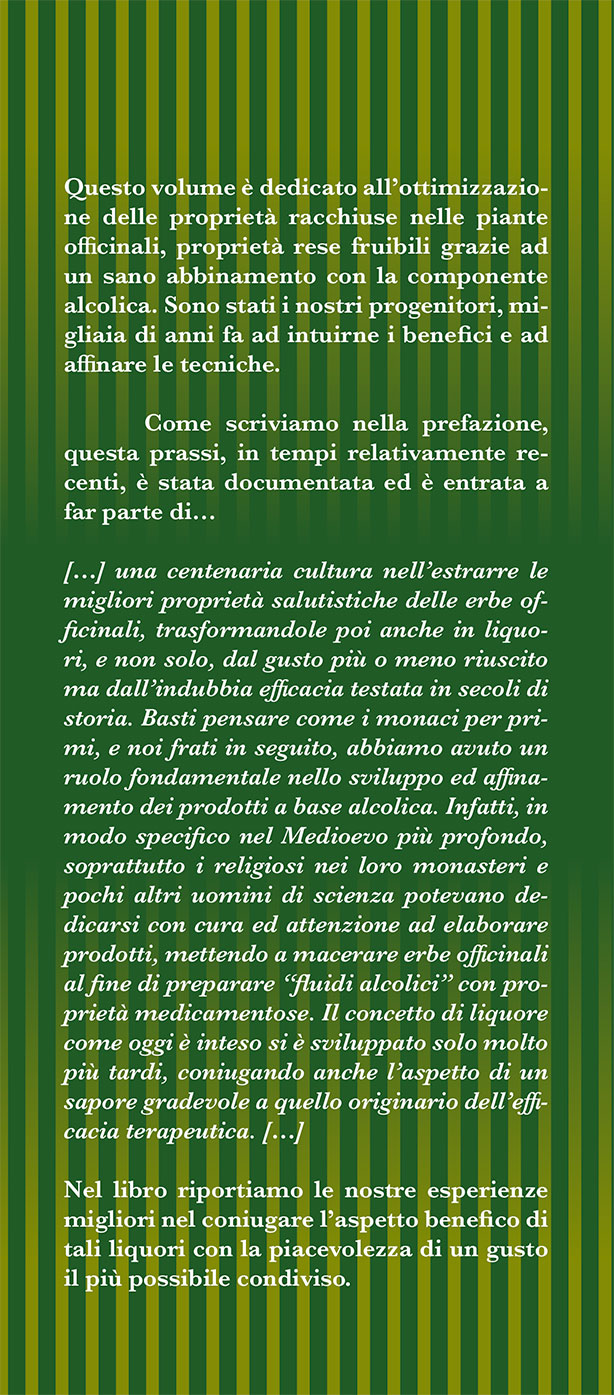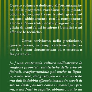 Ottime indicazioni, proposte, consigli e tanti piccoli segreti su come predisporre un liquore arricchito con erbe officinali e non solo, fanno di questo libro una vera trattazione completa, semplice e chiara, utilizzabile anche da chi non è fornito di particolari competenze in questo settore, per la preparazione in casa di liquori del tutto naturali.
