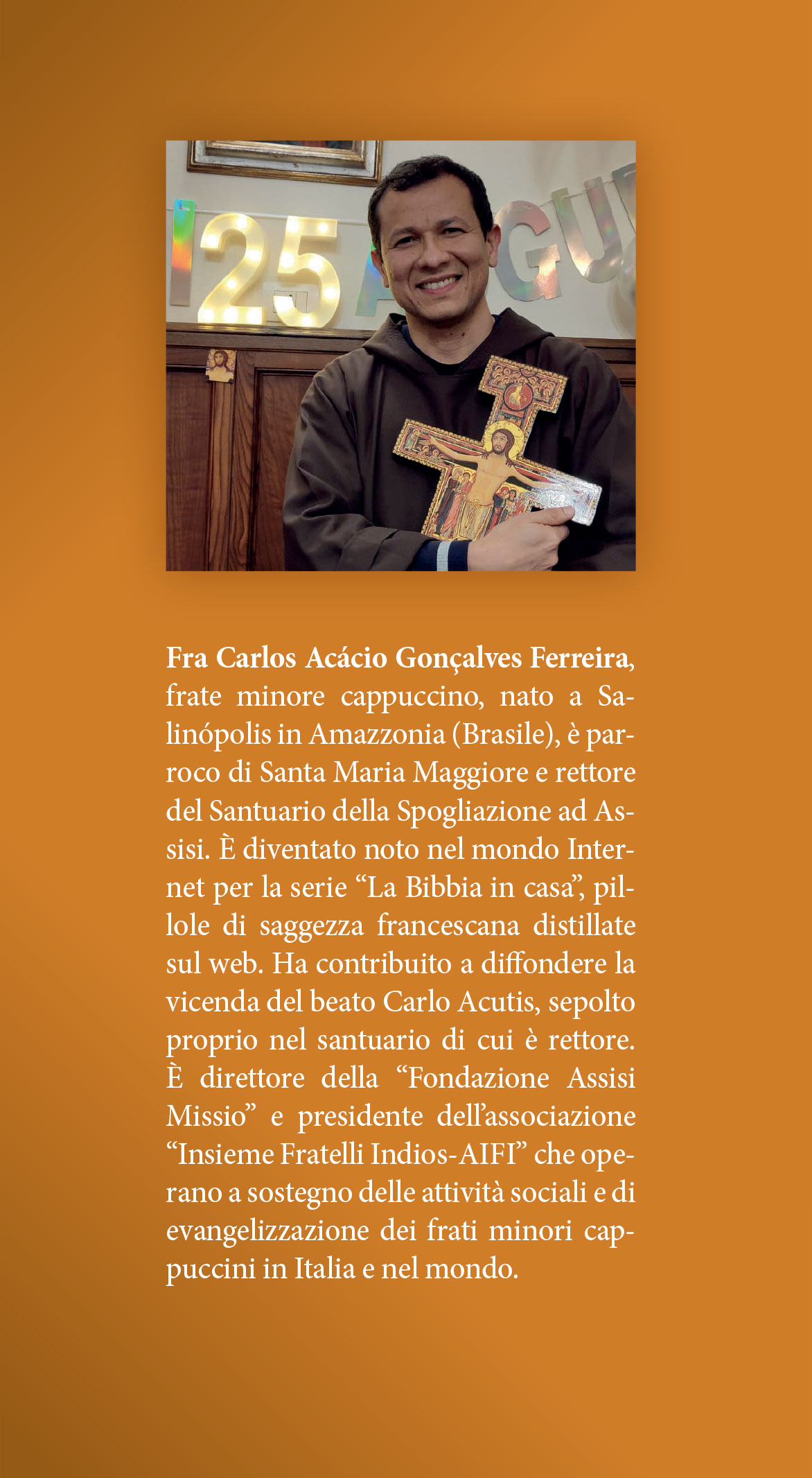 L'autore | Fra Carlos Acacio Gonçalves Ferreira, frate francescano cappuccino, brasiliano, è rettore del Santuario della Spogliazione ad Assisi. È diventato noto nel mondo Internet per la serie "La Bibbia in casa": pillole di saggezza francescana distillate sul web. Ha contribuito a diffondere la vicenda del beato Carlo Acutis, sepolto proprio nel santuario di cui è rettore.