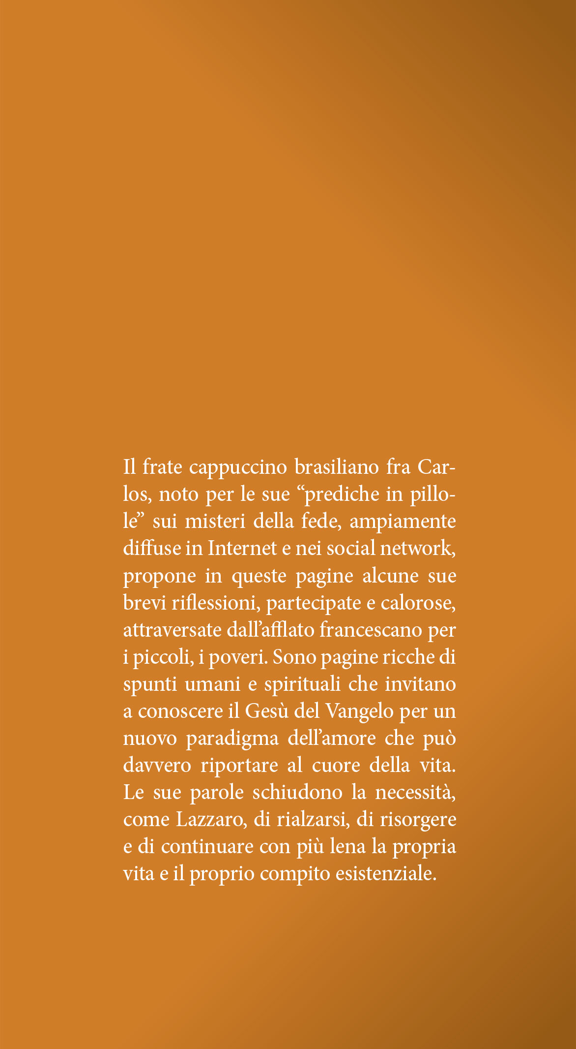 Il libro | In occasione della Settimana Santa 2022, il frate cappuccino brasiliano fra Carlos Acacio, noto per le sue "prediche in pillole" sul Vangelo e sui misteri della fede, ampiamente diffusi su Internet e sui social network, propone delle sue riflessioni partecipate e calorose, attraversate dall'afflato francescano per i piccoli, i poveri e gli abbandonati, ma anche ricche di spunti spirituali per il cristiano che vive una vita meno difficile, inserita nella vita sociale quotidiana. Le sue parole schiudono la necessità, come Lazzaro, di alzarsi, di risorgere e continuare con più lena la propria vita di evangelizzazione e di amore evangelico.